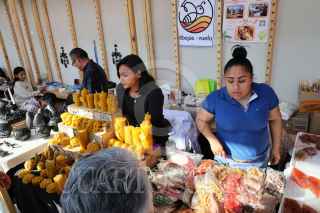 CIUDAD DE MÉXICO, 27DICIEMBRE2024.- La Verbena Navideña del Zócalo capitalino continúa con múltiples atractivos, entre ellos la feria “Artesanos en el corazón”, conformada por 252 expositores de 12 entidades del país, quienes ofrecen piezas de arte popular auténticas para las y los miles de visitantes de la Plaza de la Constitución. En los pasillos de la feria se encuentra la señora Feliciana Bautista, originaria de Michoacán, quien se dedica a la creación de prendas con la técnica de telar de cintura, los cuales destacan por su decoración con plumas de aves y diseños florales, al grado que han sido portados por diversos artistas. FOTO: GOBIERNO DE LA CIUDAD DE MÉXICO/CUARTOSCURO.COM