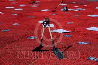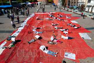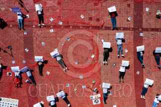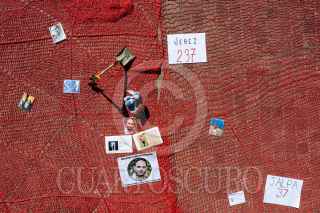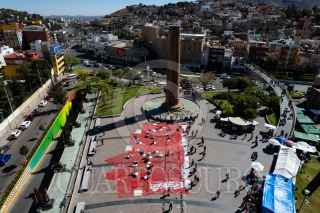 ZACATECAS, ZACATECAS, 27DICIEMBRE2024.- Colectivos de madres buscadoras y solidarios de la colectiva “Sangre de mi Sangre”, realizaron una intervención del espacio público como memoria a las personas desaparecidas en Zacatecas. Sobre la plancha de la Plaza Bicentenario en pleno centro de la capital las madres y familiares se recostaron sobre el tejido con cartulinas que indicaban la cantidad de desaparecidos por municipio, acompañadas de picos, palas, ositos y fotos como símbolo de memoria y búsqueda. FOTO: ADOLFO VLADIMIR /CUARTOSCURO.COM