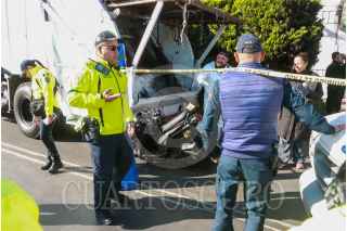 CIUDAD DE MÉXICO, 28DICIEMBRE2024.- Murió un hombre que viajaba en una motoneta y se estrelló contra la parte trasera de un camión de basura, que estaba estacionado sobre la calle de Dakota, en la colonia barrio San Mateo, alcaldía Coyoacán. FOTO: ROGELIO MORALES/CUARTOSCURO.COM