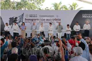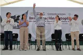 BAHÍA DE BANDERAS, NAYARIT, 28DICIEMBRE2024.- Claudia Sheinbaum, Presidenta de México, encabezó la entrega de la autopista Bucerías-Puerto Vallarta. La acompañaron Ariadna Montiel, secretaria del Bienestar y Miguel Ángel Navarro Quintero, gobernador de Nayarit. FOTO: PRESIDENCIA/CUARTOSCURO.COM