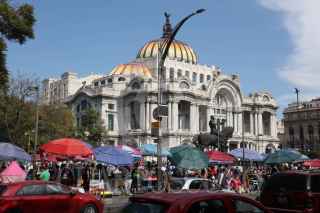 CIUDAD DE MÉXICO, 28DICIEMBRE2024.- A pesar de los operativos de la policía capitalina los vendedores ambulantes permanecen muy cerca del Palacio de Bellas Artes, solo un fila de policías antimotines impiden que los comerciantes invadan las aceras de este inmueble. FOTO: MOISÉS PABLO/CUARTOSCURO.COM