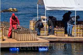 ACAPULCO, GUERRERO, 28DICIEMBRE2024.- Toneladas de pólvora empezó a ser colocada este día en la bahía de Acapulco para el espectáculo de pirotecnia de año 2025, el cual lleva por nombre " Bahía de las Estrellas". Los puntos del puerto en donde se realiza el espectáculo son Pie de la Cuesta, Playa Bonfil, Playa La Gloria, las playas de Caleta y Caletilla, y la bahía de Acapulco. FOTO: CARLOS ALBERTO CARBAJAL/CUARTOSCURO.COM
