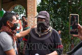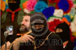 SAN CRISTÓBAL DE LAS CASAS, CHIAPAS, 28DICIEMBRE2024.- Da inicio en la universidad de la Tierra CIDECI los Encuentros Internacionales de Resistencias y Rebeldías organizado por el Ejército Zapatista de Liberación Nacional. En la primera mesa de diálogo fue dirigido por el capitán Insurgente Marcos y el comandante Moisés, quienes agradecieron la participación de académicos y simpatizantes del movimiento por dar su palabra. El auditorio del Cideci se mantuvo en su máxima capacidad, al finalizar la mesa el capitán Marcos fue abordado por los asistentes para tomarse algunas fotografías. FOTO: ISABEL MATEOS /CUARTOSCURO.COM