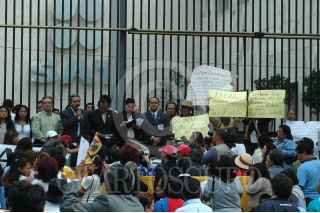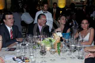 MÉXICO, D.F., 26SEPTIEMBRE2007.- El jefe de Gobierno, Marcelo Ebrard, el director de Grupo Salinas, Ricardo Salinas Pliego, y sus respectivas esposas, Mariagna Prats y Maria Laura Medina, durante la presentación de los ganadores del concurso 13 Maravillas de México. FOTO: ISAAC ESQUIVEL/CUARTOSCURO.COM