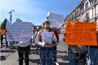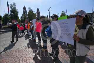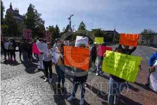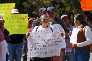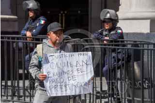 TOLUCA, ESTADO DE MÉXICO, 30DICIEMBRE2024.- Trabajadores del ayuntamiento de Ocuilan se manifestaron en Palacio de Gobierno denunciando la falta de pago de sus sueldos y prestaciones, desde el mes de agosto han tenido retrasos en sus pagos y denunciaron diversas irregularidades por parte del Tesorero del ayuntamiento, José Arturo Vázquez, piden la intervención de la gobernadora mexiquense Delfina Gómez, ya que no hay servicios ni seguridad en este municipio. FOTO: CRISANTA ESPINOSA AGUILAR /CUARTOSCURO.COM