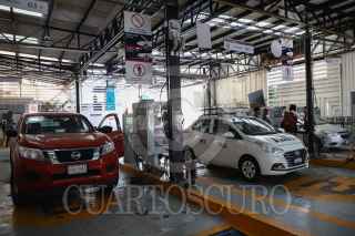 CIUDAD DE MÉXICO, 31DICIEMBRE2024.- Trabajos de revisión en un automóvil por parte de los trabajadores del Verificentro de la capital. FOTO: DANIEL AUGUSTO/ CUARTOSCURO.COM
