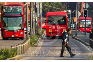 CIUDAD DE MÉXICO. 31DICIEMBRE2024.- Transporte público Metrobús y turístico, en la avenida Hidalgo del Centro histórico de la Capital. FOTO: VICTORIA VALTIERRA/CUARTOSCURO.COM