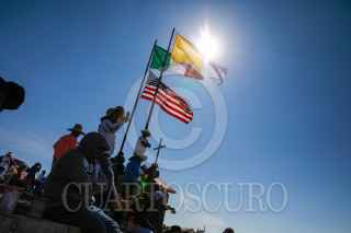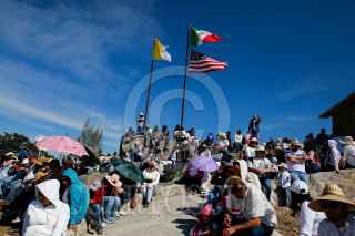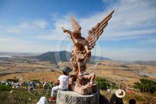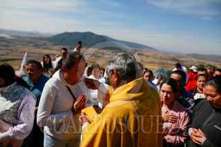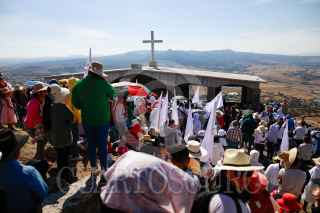 QUERÉTARO, QUERÉTARO, 31DICIEMBRE2024.- A más de mil metros de altura, en la cima del cerro de la Cruz, se encuentra el Santuario de Santo Toribio, el patrono de los migrantes. Cada año, durante las fiestas navideñas, este remoto lugar se convierte en un punto de encuentro para que los migrantes de distintos lugares de Estados Unidos y sus familias sigan llevando consigo las tradiciones y el fervor de su tierra natal. Para llegar hasta allí, los fieles deben enfrentar un recorrido arduo: ya sea en transporte especializado, a caballo o a pie, con una caminata que puede durar hasta 40 minutos. Con el propósito de rendir homenaje al santo que, con su figura, representa la esperanza y la fortaleza de los migrantes. FOTO: CÉSAR GÓMEZ/CUARTOSCURO.COM