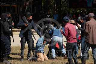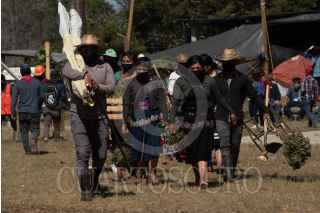 OVENTIC, CHIAPAS, 31DICIEMBRE2024.- Aniversario 31 del Levantamiento Armado del Ejército Zapatista de Liberación Nacional en el Caracol 2 Oventic. Para dar inicio a la celebración los jóvenes realizaron una obra de teatro en la que representaban cómo el sistema capitalista afecta e incursiona en sus comunidades. FOTO: ISABEL MATEOS /CUARTOSCURO.COM