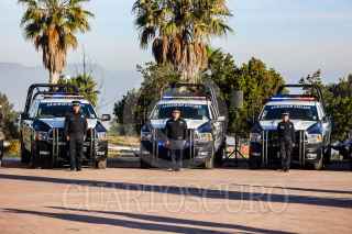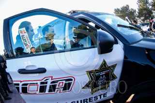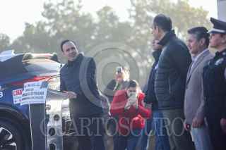 SALTILLO, COAHUILA, 02ENERO2025.- El gobernador del estado de Coahuila, Manolo Jiménez Salinas, junto con el alcalde Javier Díaz González entregaron hoy, en el Día del Policía, 37 patrullas. El evento se realizó en el Parque las Maravillas. El mandatario enfatizó que con estas unidades se reforzará el blindaje de seguridad de Saltillo. FOTO: ALEJANDRO RODRÍGUEZ/CUARTOSCURO.COM