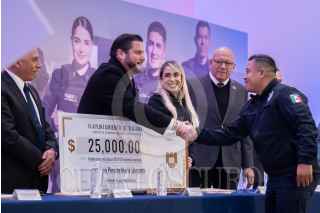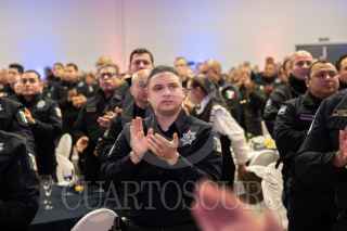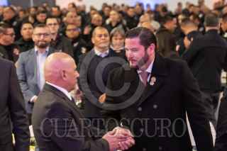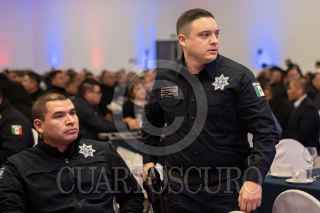 TIJUANA, BAJA CALIFORNIA, 02ENERO2025.- El ayuntamiento de Tijuana, encabezado por el alcalde, Ismael Burgueño, llevó a cabo una ceremonia de condecoraciones policiales al mérito 2024 en el marco del Día Internacional del Policía. La administración hizo entrega de un bono económico a 70 elementos con resultados destacados durante 2024 por 29, 669.38 pesos. En total fueron 5 los policías municipales condecorados por el mérito a la perseverancia, honor policial al mérito, mérito a un caso excepcional, mérito al valor heroico y el mérito al policía caído. OMAR MARTÍNEZ/ CUARTOSCURO.COM