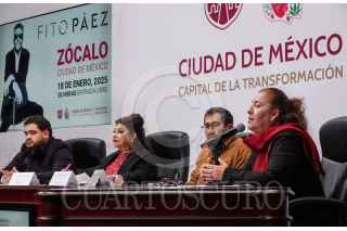 CIUDAD DE MÉXICO, 03ENERO2025.- Ana Francis López, secretaria de Cultura de la Ciudad de México, anunció en conferencia de prensa las actividades principales que se realizaran en el primer mes del año 2025, entre las que destacan la partida de Rosca de Reyes y verbena en el Zócalo capitalino así como en las 16 alcaldía de la ciudad. Asimismo, confirmó el concierto gratutio del rockero argentino Fito Páez para el próximo sábado 18 de enero de 2025, esto debido a la cancelación en septiembre pasado por cuestiones de salud del artista. FOTO: GALO CAÑAS/CUARTOSCURO.COM