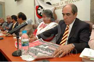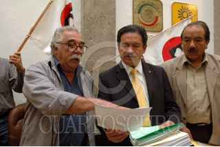 MÉXICO, DF., 27SEPTIEMBRE2007.- Raul Alvarez Garín integrante del comité del 68 y Carlos Navarrete coordinador del grupo parlamentario del PRD en la reunión de hoy dende entregaron doumentos del juicio que se realíza en contra del ex Presidente Luis Echevrria. FOTO: ISRAEL VERA/CUARTOSCURO.COM