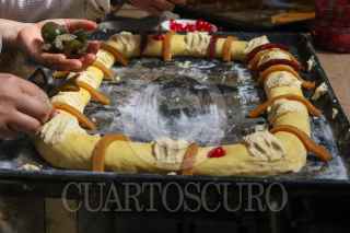 CIUDAD DE MÉXICO. 03ENERO2025.- En la panadería "Tahona", que se encuentra en el Eje Central y Perú en el Centro Histórico de la ciudad, se encuentran trabajando a marchas forzadas elaborando roscas de Reyes; rellenas, gourmet y las tradicionales. FOTO: VICTORIA VALTIERRA/CUARTOSCURO.COM