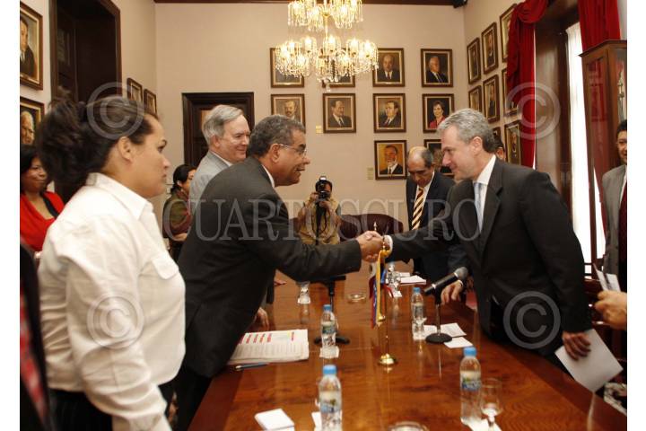MÉXICO, D.F., 27SEPTIEMBRE2007.- Los senadores Carlos Navarrete y Santiago Creel, recibieron de manos de diputados venezolanos un proyecto de reforma constitucional por el mandatario venezolano Hugo Chavez ante la Asamblea Nacional de aquél país. FOTO: ISRAEL VERA/CUARTOSCURO.COM