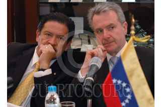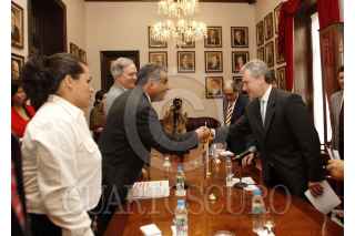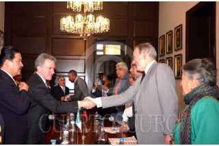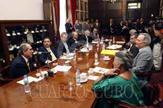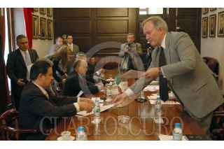 MÉXICO, D.F., 27SEPTIEMBRE2007.- Los senadores Carlos Navarrete y Santiago Creel, recibieron de manos de diputados venezolanos un proyecto de reforma constitucional por el mandatario venezolano Hugo Chavez ante la Asamblea Nacional de aquél país. FOTO: ISRAEL VERA/CUARTOSCURO.COM