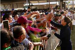 TEJUPILCO, ESTADO DE MÉXICO, 03ENERO2025.- Claudia Sheinbaum, presidenta de México, encabezó la entrega de tarjetas del bienestar en Tejupilco. FOTO: PRESIDENCIA/CUARTOSCURO.COM