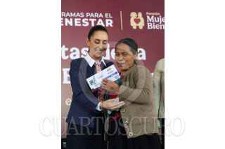 HUAUCHINANGO, PUEBLA, 04ENERO2024.- Claudia Sheinbaum, presidenta de México, durante la entrega de tarjetas de la Pensión Mujeres Bienestar. FOTO: PRESIDENCIA/CUARTOSCURO.COM