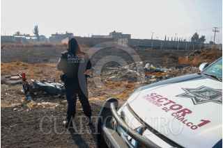 CHALCO, ESTADOS DE MÉXICO, 04ENERO2014.- Mataron un hombre a balazos para robarle su moto en la avenida Las Torres y calle de Vicente Guerrero, en la colonia Jardines de Chalco. La unidad fue hallada a una distancia de cien metros, ahí mismo localizaron otra moto que se la policía considero que podría ser de los asaltantes. FOTO: ROGELIO MORALES/CUARTOSCURO.COM