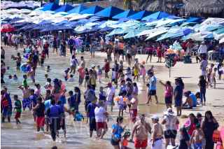 ACAPULCO, GUERRERO, 04ENERO2025.- Las playas de Caleta y Caletilla en la Zona Tradicional de Acapulco tuvieron una gran afluencia de turistas en el último día del fin de semana de las vacaciones decembrinas. La Secretaria de Turismo del Estado informó una ocupación hotelera de un 82.9 % para el puerto de Acapulco. FOTO: CARLOS CARBAJAL/CUARTOSCURO.COM