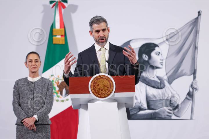 CIUDAD DE MÉXICO, 06ENERO2025.- Roberto Capuano Tripp, encargado del proyecto de Desarrollo Sustentable del Estado de México, Hidalgo, y Ciudad de México, explica el proyecto Olinia, en el cual el gobierno pretende construir mini vehículos eléctricos desarrollados con ingeniería mexicana, esto durante la Mañanera del Pueblo, que estuvo encabeza por la Presidenta de México, Claudia Sheinbaum. FOTO: MOISÉS PABLO/CUARTOSCURO.COM