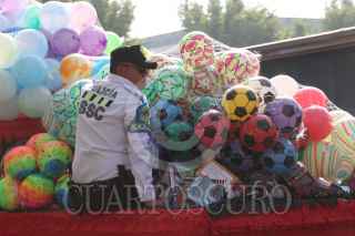 CIUDAD DE MÉXICO, 06ENERO2025.- Integrantes de la Policía de Tránsito de la Secretaria de Seguridad Ciudadana (SSC) caracterizaron sus unidades como algunos personajes de películas infantiles para realizar una caravana en la que entregaron juguetes a niñas y niños por el Día de Reyes. FOTO: MOISÉS PABLO/CUARTOSCURO.COM