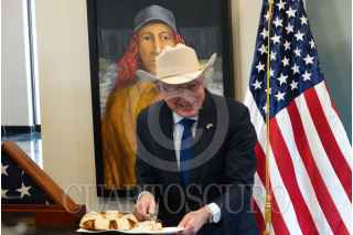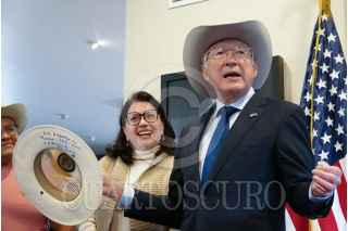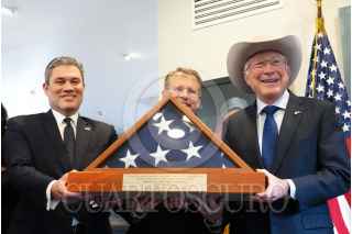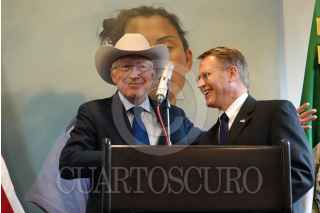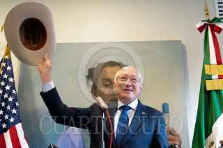 CIUDAD DE MÉXICO, 06ENERO2025.- Mark Johnson, encargado de negocios de la embajada de Estados Unidos, y Ken Salazar, embajador de Estados Unidos de América en México, mostraron la bandera de este país durante una conferencia en la que anunció su despedida de este cargo en las instalaciones de esta dependencia. FOTO: GRACIELA LÓPEZ/CUARTOSCURO.COM