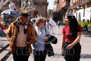 SAN LUIS POTOSÍ, SAN LUIS POTOSÍ, 06ENERO2025.- Una familia potosina transita en el centro de la ciudad con sus coronas como los tradicionales tres reyes magos. FOTO: MARCELO PALACIOS/CUARTOSCURO.COM