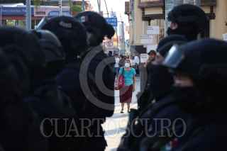 TAPACHULA, CHIAPAS, 07ENERO2025.- El Grupo Especial de Reacción Inmediata (GERI), adscrito a la Policía Municipal, ha puesto en marcha un operativo en las principales calles cercanas a la presidencia municipal. El principal objetivo de esta acción es prevenir los delitos en la zona. FOTO: DAMIÁN SÁNCHEZ/CUARTOSCURO.COM