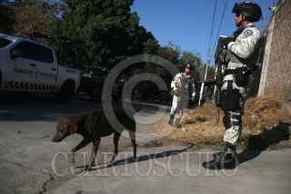 XOCHITEPEC, MORELOS, 08ENERO2025.- Elementos de la Guardia Nacional y del ejercito realizan el acordonamiento de una escena de crimen en este municipio. Al amanecer de este día, vecinos de la calle Cerro de la Estrella de la colonia Las Palmas tuvieron a la vista el cadáver de un hombre envuelto en bolsas de basura negras, a lado los victimarios dejaron un mensaje escrito en una hoja de papel. Peritos e investigadores de la Fiscalía de Justicia del Estado se trasladaron al sitio para iniciar la averiguación del caso. En los ocho días de este año 2025 se han cometido en la entidad 24 hechos violentos que ha dejado 21 hombres y 3 mujeres sin vida, una de estas ultimas fue localizada en un bidón de plástico, tenia varios meses de gestación y fue su pareja sentimental quien la asesino. FOTO: MARGARITO PÉREZ RETANA/CUARTOSCURO.COM