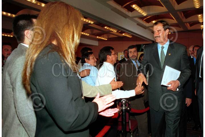 Francisco Gil Díaz "cotorrea" con Virginia González Torres antes del Congreso del Consejo Mexicano del Ahorro y Credito Popular. FOTO: Christian Palma/CUARTOSCURO.COM