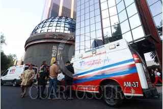 CIUDAD DE MÉXICO, 08ENERO2025.- Un trabajador resultó gravemente herido tras caer de varios pisos cuando limpiaba vidrios en el domo de la Bolsa Mexicana de Valores (BMV). El afectado fue trasladado a un hospital. FOTO: ROGELIO MORALES/CUARTOSCURO.COM