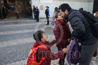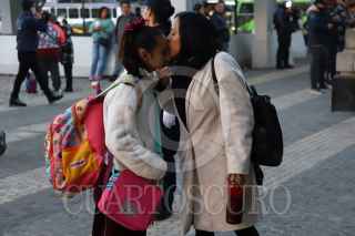 CIUDAD DE MÉXICO, 09ENERO2025.- Un padre de familia de despide de sus hijos luego de llevarlos a su escuela. FOTO: DANIEL AUGUSTO/ CUARTOSCURO.COM