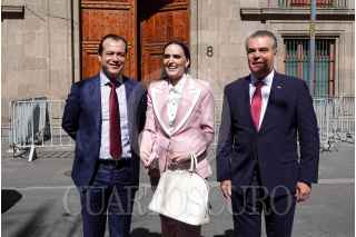 CIUDAD DE MÉXICO, 09ENERO2025.- Francisco Cervantes, presidente del Consejo Coordinador Empresarial, y Altagracia Gómez, enlace del gobierno federal con el sector empresarial, anunciaron que el día lunes será la presentación de llamado Plan México para la mejora y aseguramiento de las inversiones. Lo anterior, tras salir de su reunión en Palacio Nacional tras la reunión con la presidenta Claudia Sheinbaum. FOTO: GALO CAÑAS/CUARTOSCURO.COM