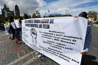 TOLUCA, ESTADO DE MÉXICO, 09ENERO2025.- Trabajadores del sector salud del ISEM se manifestaron frente a Palacio de Gobierno bloqueando la avenida Sebastián Lerdo de Tejada en Toluca, exigiendo reconocimientos sus necesidades laborales, basificacion, prestaciones de ley, continuidad de contratos, sueldos dignos, de no ser escuchados por las autoridades estatales continuarán con las manifestaciones. FOTO: CRISANTA ESPINOSA AGUILAR /CUARTOSCURO.COM