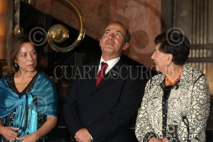 MÉXICO, D.F., 27SEPTIEMBRE2007.- Felipe Calderón Hinojosa, Presidente de México saluda a Sissi Harp Calderoni, directora de la Fundación Alfredo Harp Helú, durante la inauguración de la exposición pictorica Diego Rivera: Epopeya Mural 1886-1957 en el Palacio de Bellas Artes. FOTO: MOISÉS PABLO/CUARTOSCURO.COM