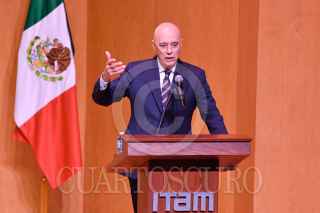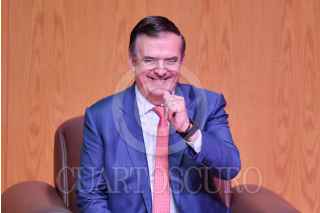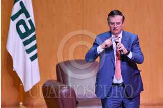 CIUDAD DE MÉXICO, 10ENERO2025.- Marcelo Ebrard, secretario de Economía, durante su participación en el "Seminario de perspectivas económicas 2025" realizado en las instalaciones del Instituto Tecnológico Autónomo de México (ITAM) en la alcaldía Álvaro Obregón. FOTO: MARIO JASSO /CUARTOSCURO.COM