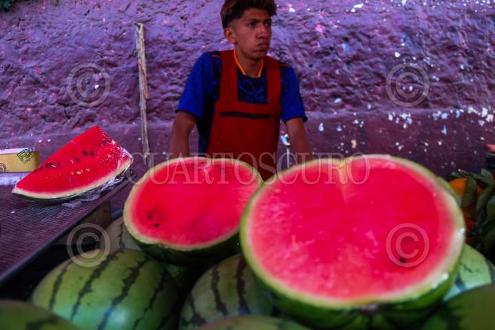 CIUDAD DE MÉXICO. 10ENERO2025.- El precio de la Sandía, en mercados públicos y tianguis es 30 o 35 pesos por kilo, cada bolsa el costo. FOTO: VICTORIA VALTIERRA/CUARTOSCURO.COM