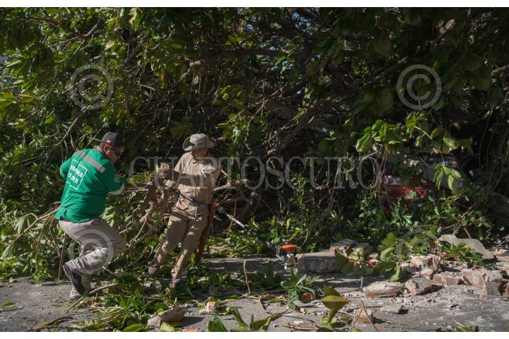 VERACRUZ, VERACRUZ, 10ENERO2025.- Un árbol de grandes dimensiones cayó sobre tres vehículos debido a las fuertes rachas de viento ocasionadas por el frente frío número 22, por lo que el Ejército Mexicano realizó labores conforme a el plan DN-lll-E. La Secretaría de Protección Civil informó sobre el ingreso del frente estado de Veracruz, el cual ocasionará un descenso considerable en las temperaturas y rachas máximas de 80 a 95 km/hr este fin de semana. FOTO: VICTORIA RAZO/CUARTOSCURO.COM