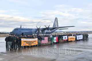 ZUMPANGO, ESTADO DE MÉXICO, 11ENERO2025.- Integrantes de la Secretaría de la Defensa Nacional (Sedena) salieron en los aviones Spartan (F.A.M 3403) y Hércules (F.A.M. 3611), de la base aérea militar número 1 para prestar ayuda humanitaria en los incendios que prevalecen en Los Ángeles. FOTO: MARIO JASSO/CUARTOSCURO.COM