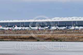 ZUMPANGO, ESTADO DE MÉXICO, 11ENERO2025.- Aviones de las principales aerolíneas (Viva Aerobus, Volaris, Mexicana y Aeroméxico) que operan en las instalaciones del Aeropuerto Internacional Felipe Ángeles (AIFA). FOTO: MARIO