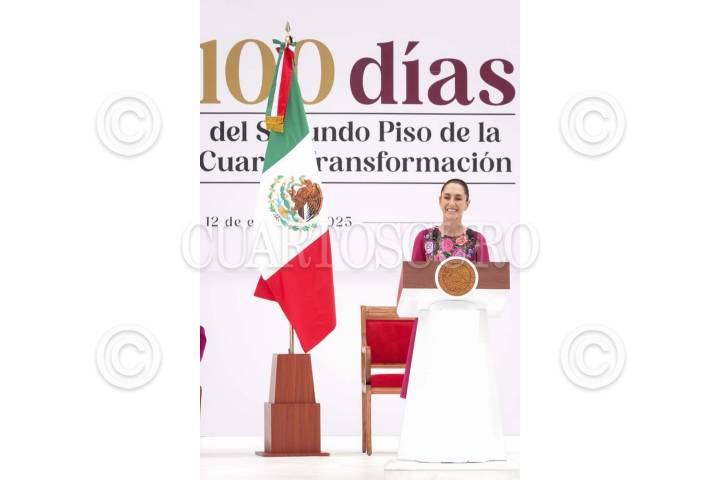 CIUDAD DE MÉXICO, 12ENERO2025.- Claudia Sheinbaum, presidenta constitucional de los Estados Unidos Mexicanos, presentó en el Zócalo capitalino su informe de Gobierno a 100 días de su mandato en el Segundo piso de la cuarta transformación. FOTO: GRACIELA LÓPEZ/CUARTOSCURO.COM