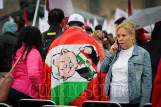 CIUDAD DE MÉXICO, 12ENERO2025.- Habitantes de la Alcaldía Venustiano Carranza, instalaron banderas durante el Informe de los 100 días de gobierno de Claudia Sheinbaum, Presidenta de México, en el Zócalo de la Ciudad de México, los asistentes hondearon banderas. FOTO: MAGDALENA MONTIEL VELÁZQUEZ/CUARTOSCURO.COM