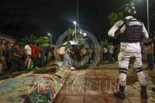 TAPACHULA, CHIAPAS, 12ENERO2025.- Alrededor de 500 migrantes de diferentes nacionalidades partieron en caravana rumbo al norte de México, los caminantes estaban concentrados en el Parque Bicentenario y de ahí salieron en contingente, algunos de los presentes realizaron plegarias para llegar con bien a Estados Unidos. Personal del Instituto Nacional de Migración (INM) intentaron disuadir que salieran en caravana y se trasladarán a algún albergue. FOTO: DAMIÁN SÁNCHEZ/CUARTOSCURO.COM