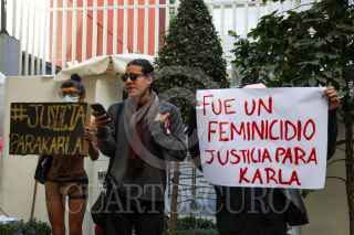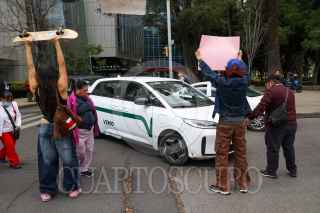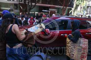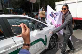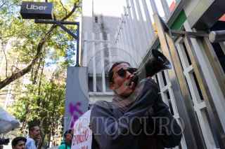 CIUDAD DE MÉXICO, 13ENERO2025.- Denisse, hija de Karla quién fue asesinada cuando prestaba un servicio como chofer para la empresa Uber, se manifestó junto con compañeras del Ángel de la Independencia a las oficinas de Uber. Ahí exigieron justicia por su feminicidio, además denunciaron que está empresa no se ha hecho responsable en ningún gasto funerario ni de acompañamiento ante las autoridades para que se esclarezca su homicidio. En las oficinas de esta empresa gritaron y pintaron consignas y reiteraron la falta de intereses por sus trabajadores. FOTO: MOISÉS PABLO/CUARTOSCURO.COM