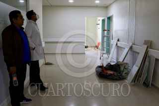 SAN BARTOLO COYOTEPEC, OAXACA, 13ENERO2025.- Trabajadores del Hospital de la Niñez Oaxaqueña “Doctor Guillermo Zárate Mijangos”, ubicado en el municipio de San Bartolo Coyotepec a 15 kilómetros de la capital de Oaxaca, pararon labores para denunciar que el centro médico infantil carece de áreas habilitadas, quirófanos, equipo y medicamentos para dar atención adecuada. El pasado 20 de junio de 2024 el hospital sufrió una inundación devastadora, a 7 meses y reabierto el pasado 10 de enero por el gobierno estatal, los trabajos de rehabilitación en áreas prioritarias como quirófanos, oncología, salas de terapia intensiva, unidad de quemados, entre otras no han sido concluidos, por lo que al decir de los trabajadores no es posible ofrecer un servicio de calidad. Además denunciaron que hay incertidumbre sobre quién manejará la operatividad del nosocomio, pues con la entrada en vigor del sistema IMSS-Bienestar en Oaxaca, el ente sigue siendo un Organismo Público Descentralizado dependiente del estado, pero que recibe también recursos federales. A la par, madres y padres de pacientes infantiles oncológicos se manifestaron al exterior para exigir certeza en la atención de sus hijos, pues el área de oncología es una de las que aún está en reconstrucción y los pacientes están siendo atendidos en un área habilitada para otros tratamientos. FOTO: CAROLINA JIMÉNEZ/CUARTOSCURO.COM