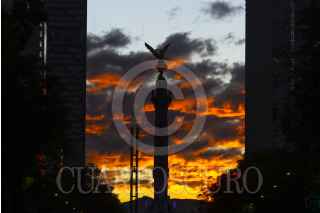 CIUDAD DE MÉXICO, 13ENERO2025.- Por segundo día consecutivo los capitalinos pudieron admirar un rojizo atardecer en la capital, en la imagen el Ángel de la Independencia es destacado en su silueta. FOTO: MOISÉS PABLO/CUARTOSCURO.COM