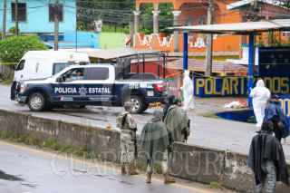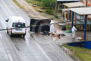 VILLAHERMOSA, TABASCO, 14ENERO2025.- Crimen organizado lanza y apila cuerpos desmembrados en una parada pública de Villahermosa. La capital tabasqueña amaneció con 4 cuerpos descuartizados, entre ellos, una mujer que fueron lanzados y apilados en la carretera Villahermosa-Teapa, en tanto el gobernador de Tabasco, Javier May Rodríguez, informó el arribo de 180 elementos de la Secretaría de la Defensa Nacional (SEDENA). El ejército, Guardia Nacional, Marina y policía estatal cerraron la carretera en ambos sentidos mientras médicos forenses y peritos realizaban las indagatorias. FOTO: LUIS LÓPEZ/CUARTOSCURO.COM