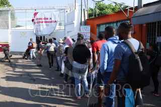 TAPACHULA, CHIAPAS, 14ENERO2025.- Migrantes de diversas nacionalidades se aglomeran en las oficinas de regularización migratoria del Instituto Nacional de Migración (INM). Aproximadamente ocho elementos del INM atienden a las personas que buscan agilizar sus trámites para poder continuar su viaje hacia los Estados Unidos. FOTO: DAMIÁN SÁNCHEZ/CUARTOSCURO.COM