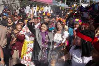 CIUDAD DE MÉXICO, 14ENERO2025.- Clara Brugada, jefa de gobierno de la Ciudad de México, y Nancy Núñez, alcaldesa de Azcapotzalco, encabezaron el recorrido por el Pueblo de San Juan Tlihuaca en la alcaldía Azcapotzalco con motivo de la inauguración del "Yolotl Anáhuac" a 700 años de la gran Tenochtitlán. FOTO: GALO CAÑAS/CUARTOSCURO.COM